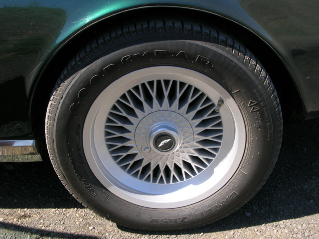 wheels powder coated and fitted with Goodyear 255/50 ZR16 tires. Suspension geometry reset for 16" wheels.