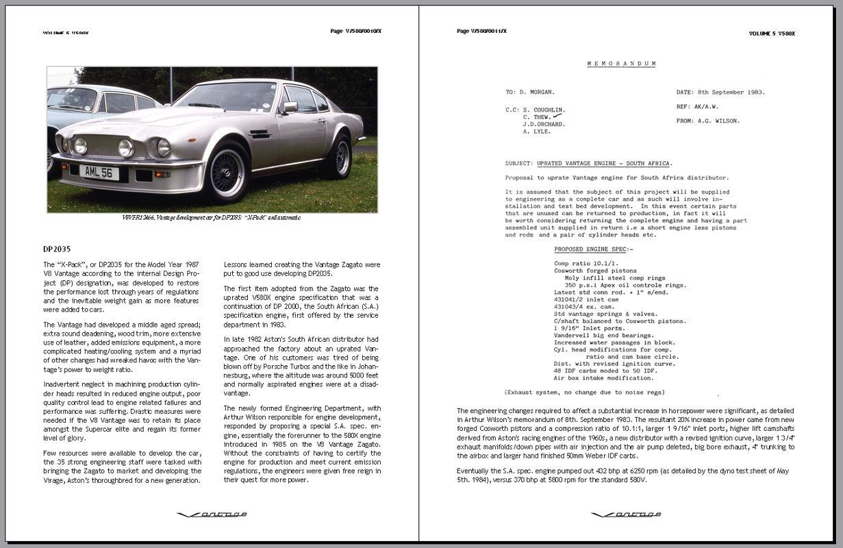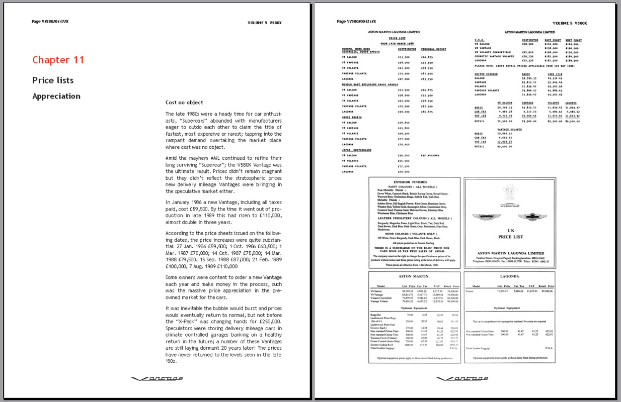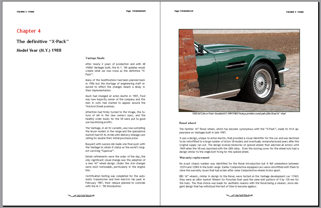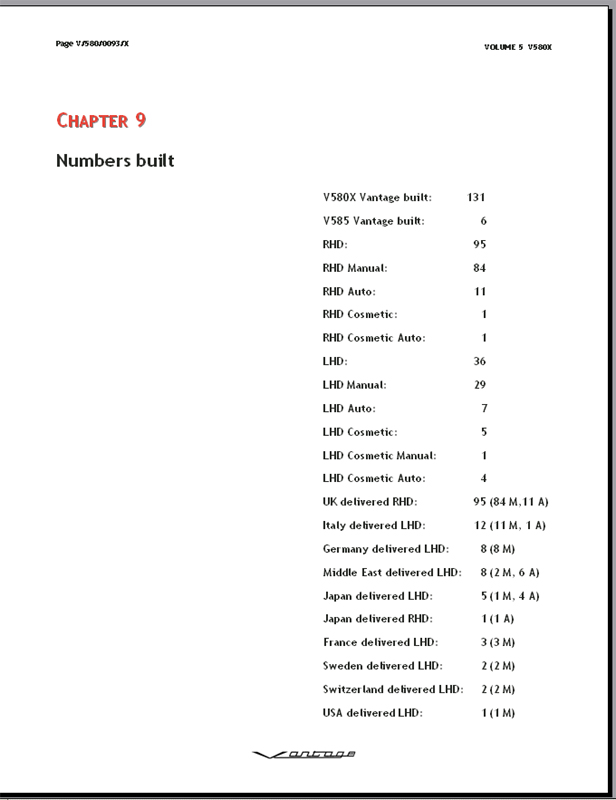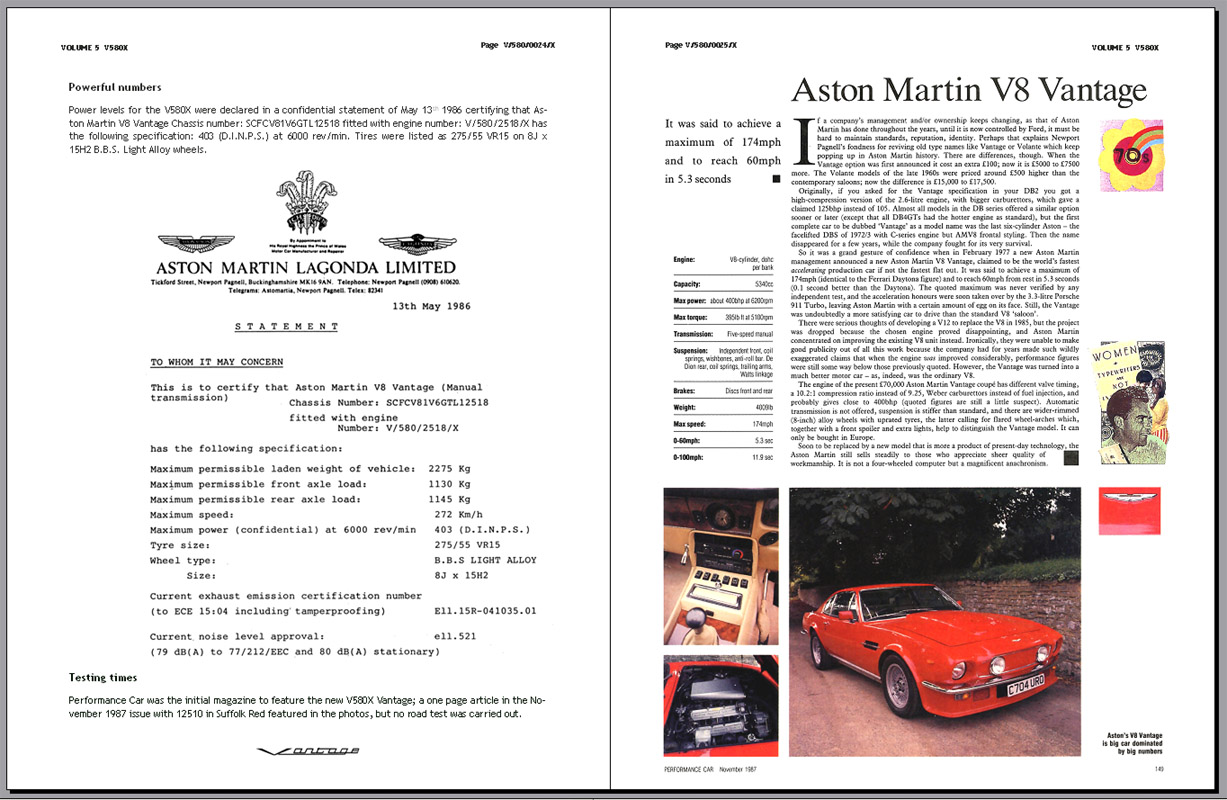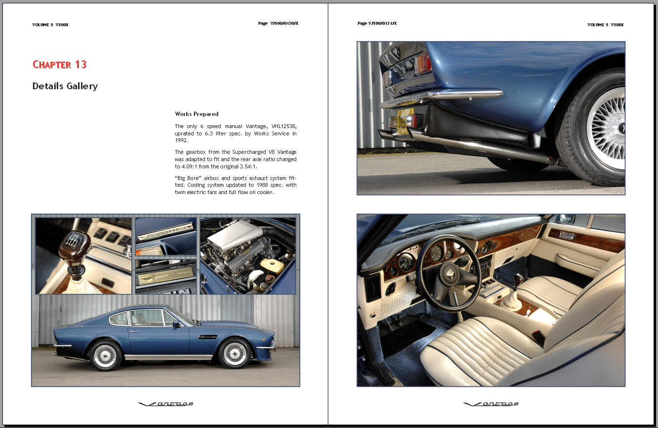 Contemporary road tests in full colour Full options list for V580X Engine builder plates Colour charts for each Vantage built Every V580X Vantage build sheet Service bulletins Engineering instructions & memos Certification records Price lists |