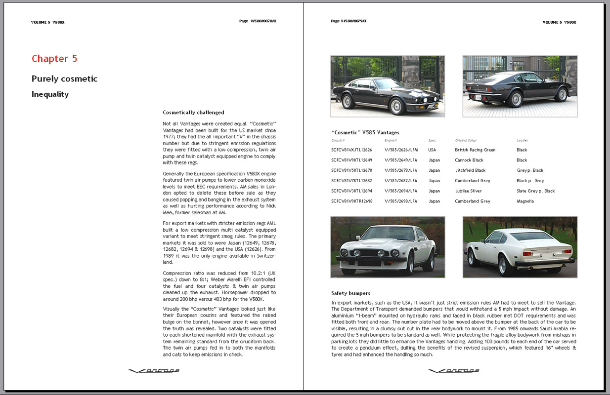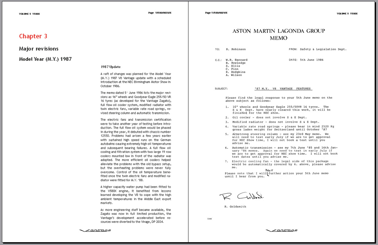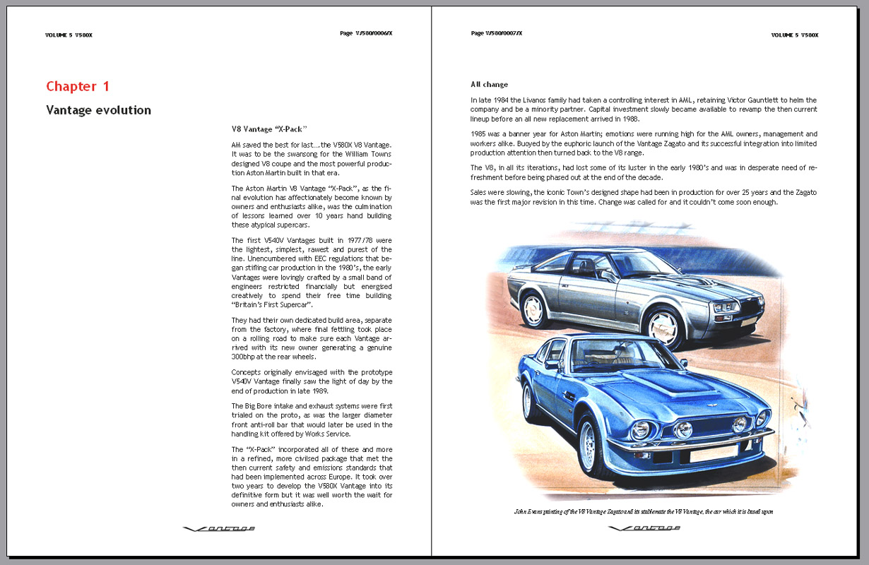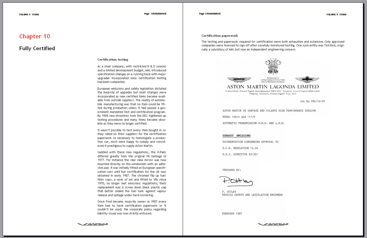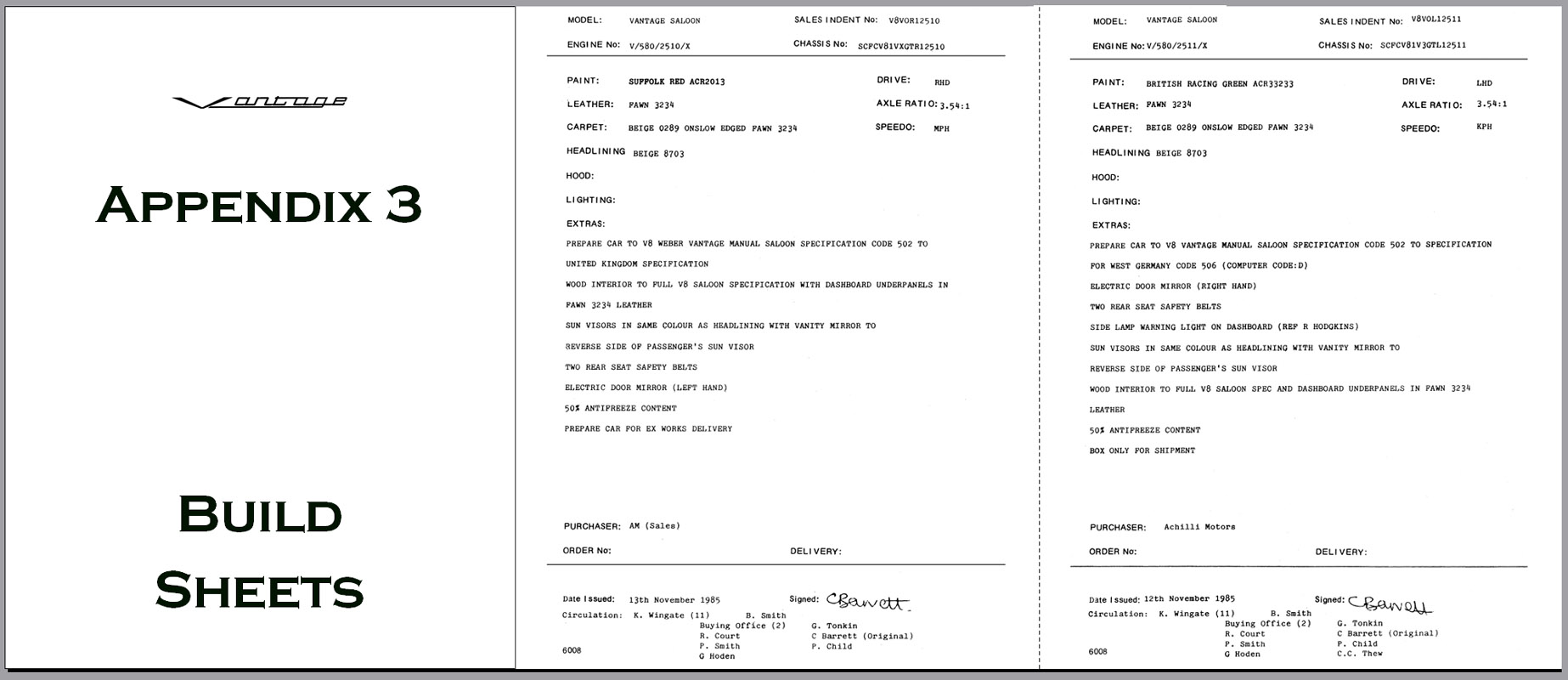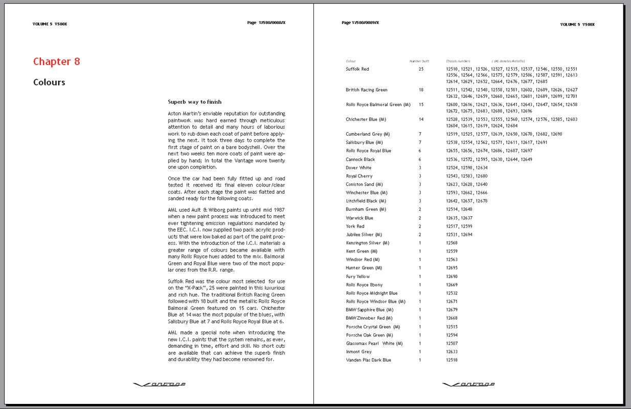 Contemporary road tests in full colour Full options list for V580X Engine builder plates Colour charts for each Vantage built Every V580X Vantage build sheet Service bulletins Engineering instructions & memos Certification records Price lists |