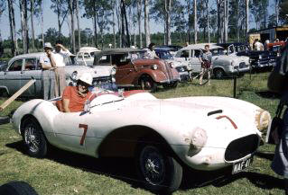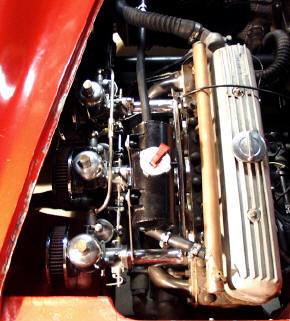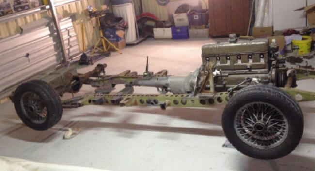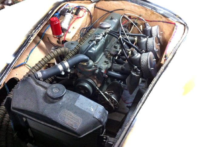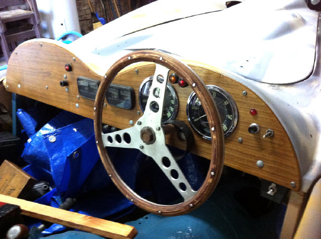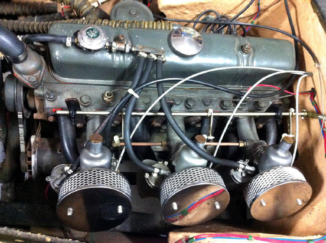 a bored out Holden Grey motor, triple SUs and a MG gearbox. Instruments